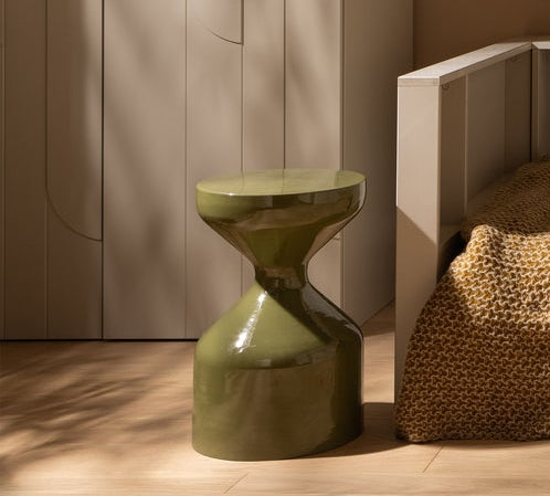Organisch gevormde bijzettafel Vervaardigd uit magnesiumoxide Met speelse uitkeping H 45 cm x B 42 cm x D 33 cm Kleur: Groen met witte spikkels