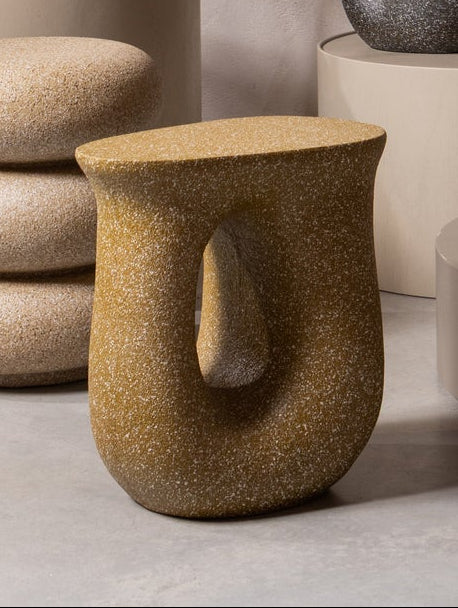 Organische, vriendelijk gevormde bijzettafel Vervaardigd uit magnesiumoxide Organisch gestapeld design H 50 cm x B 40 cm x D 40 cm Kleur: Beige me...