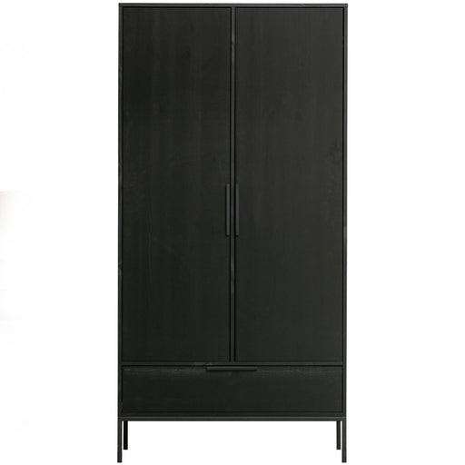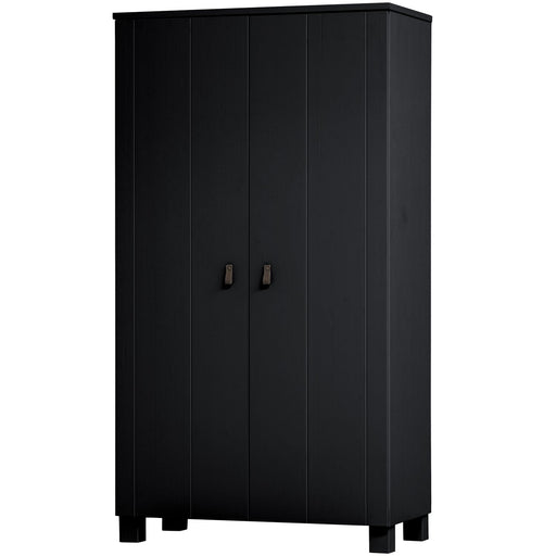 Robuuste, stoere garderobekast Zwart grenenhout (FSC) Voorzien van genoeg opbergruimte Afmetingen (hxbxd): 180 x 94 x 40 cm